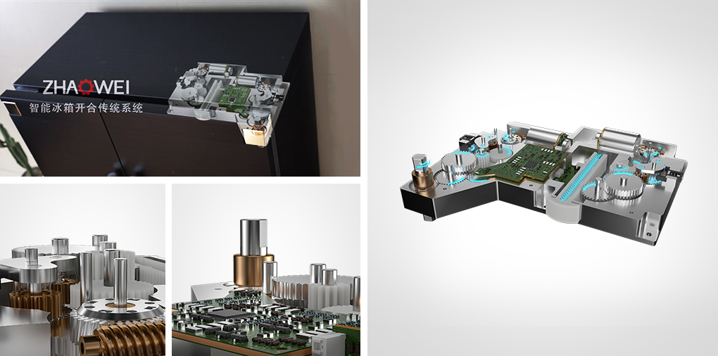 HJC黄金城官网冰箱门开合驱动系统(冰箱自动开门电机)结合距离感应器(红外线传感器等)可解决现有冰箱开关门不方便的弊端,通过网络控制、开关控制、感应控制控制驱动装置向门体传递驱动力可提升冰箱门稳定开合。