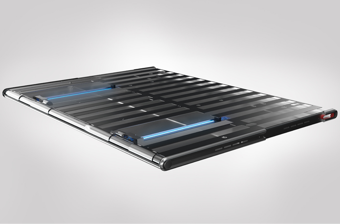 目前,伸缩屏一般通过按键控制电机,带动屏幕履带实现伸缩。这种方式的好处在于收放过程中无折痕,非常方便。然而,这种方式的伸缩屏幕,对微型驱动性能要求较高。一方面,柔性屏幕和伸缩屏驱动系统自身的结构一般比较扁平,为驱动模组的设计带来了难题。另一方面,还需微型驱动系统结构精密,以保证伸缩的顺滑和低噪音。